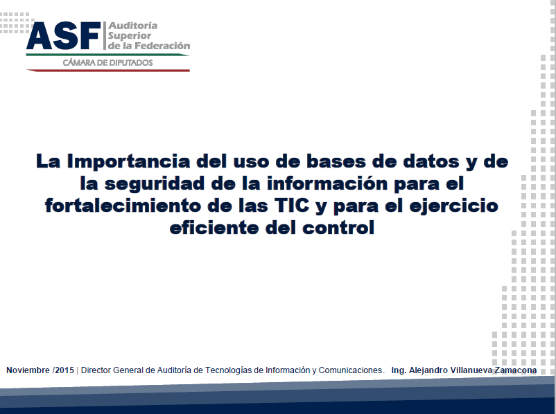 Título: La Importancia del uso de bases de datos y de la seguridad de la información para el fortalecimiento de las TIC y para el ejercicio eficiente del control