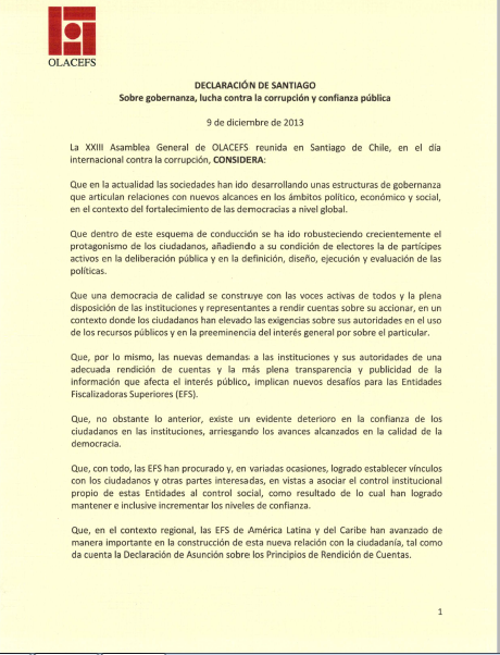 Título: Declaración de Santiago sobre Gobernanza, lucha contra la Corrupción y Confianza Pública