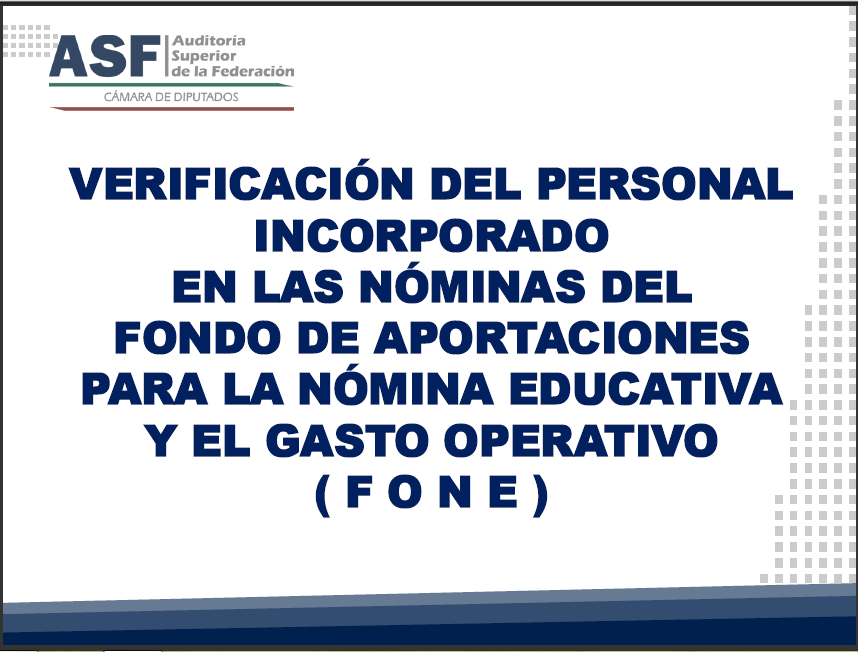 : Verificación del Personal Incorporado en las Nóminas del Fondo de Aportaciones para la Nómina Educativa y el Gasto Operativo (FONE)